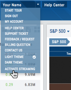 1. Select Activate Streaming from your user menu in the header.
